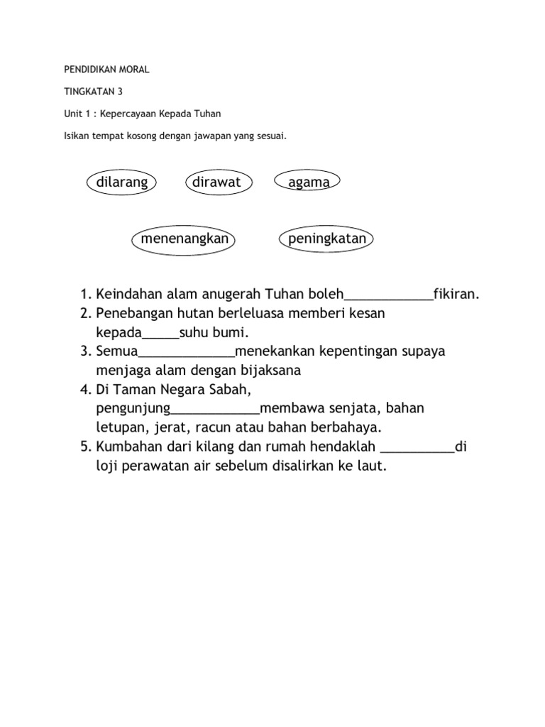 Unit 1 Pendidikan Moral Ting 3 Latihan Pdf